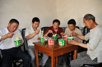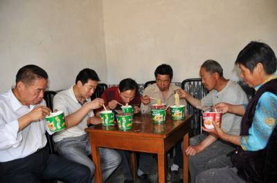 4月29日中午,郧县移民局住村工作队在堰河村8组村民常治学家吃自带的大碗面。郧县自开展“三万”干部进万家以来,各工作队都自带大碗面或自掏腰包解决中午和晚饭问题,做到进村入户给村民们办实事,不给村民添麻烦。 图为移民局住队工作队员正在吃中午自带大碗面时的情景。 周家山摄 郧县城管大队 电话13872840078 邮编442500