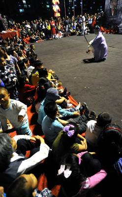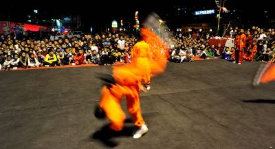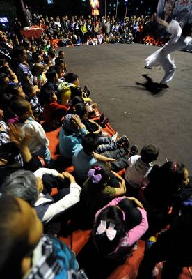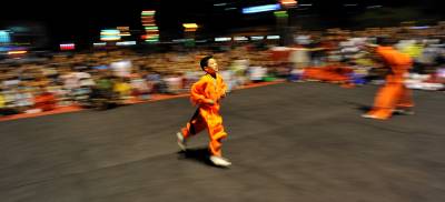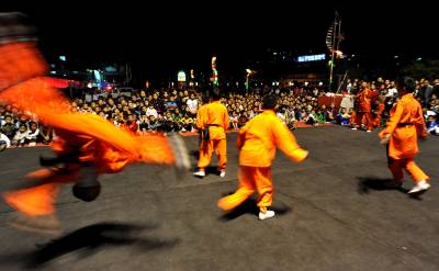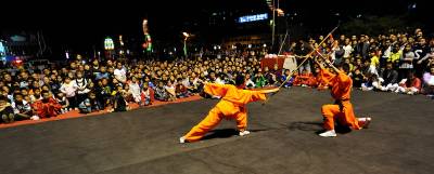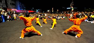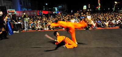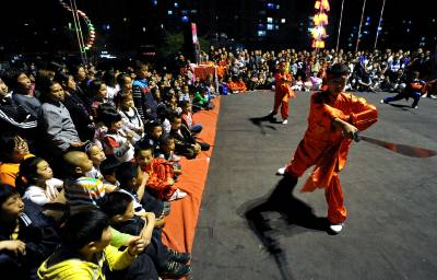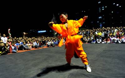 4月29日,武当弟子们在宣恩县为民众表演武当武术。