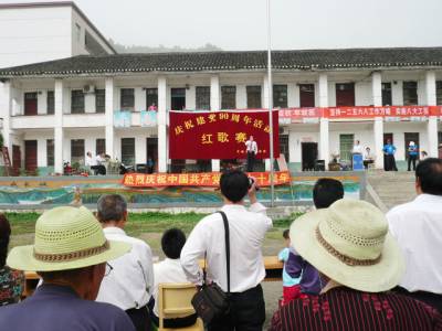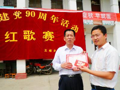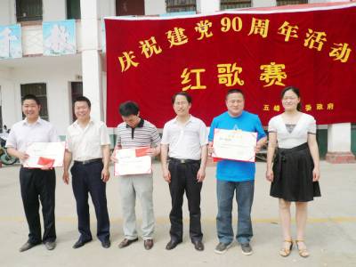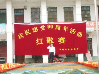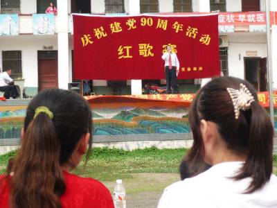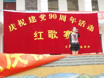 4月30日是郧县五峰乡一年一度的农历三月二十八传统庙会,该乡党委、政府乘此契机,在五峰中学广场举办“唱红歌比赛,庆祝建党90周年”活动,用最美的歌声营造山乡浓厚文化氛围。当日歌赛会上,有5个单位、18位歌手参赛,比赛结果出台,有3个单位和4位选手分获123等奖和一个特等奖。(周宗华摄)