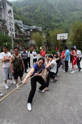 五月一日,桃电公司组织职工娱乐活动,图为比赛现场。