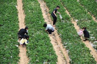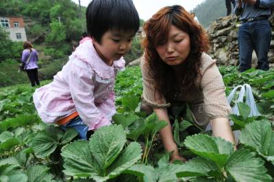5月1日至15目,郧县在与十堰市交界的209国道东西两侧的开发区樱桃沟村,柳陂镇的马蹄沟村,王家学村,梯子沟村举办郧县第四届樱桃节,“五一”三天假吸引着众多游客进入这四个村自已采摘时令水果,特别是刚刚成熟的草莓最受欢迎,大人,小孩一家人自已采摘大包小包装上车,其乐融融。特别是村民开办的农家乐天天爆满,农业观光游带动一方百姓参与观光游建设。 图为游客们正在王家学村采摘草莓时的情景。 周家山摄 郧县城管大队 电话13872840078 邮编442500