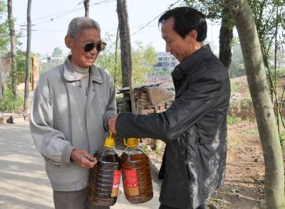 镜头一:5月1日上午6点10分,杨文华从家里带了两壶食用油,送给了省见义勇为标兵、优秀党员城关菜园村四组孤寡老人赵家有,这是杨文华结交已有20多年的穷朋友,他每月必须来看望他。