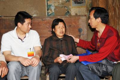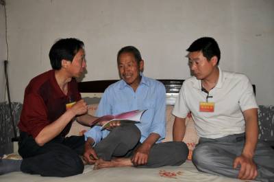 镜头十六:下午5:35分,来到9组78岁的老党员常正有家访问民情得知,常正有老婆去世多年,一个儿子招上门女婿,一个儿子外地打工,一个人孤身在家,近两天身体不适,血压升高。杨文华和工作队员赵凤舟得知这一情况后,立即把常正有送到8公里外的堰河卫生室治疗。