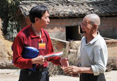 犁耙水响闹春耕,郧县干部下基层。同吃同住同劳动,沉下心来访民情,面对面、手拉手、政策送到家门口。风里来,雨里去,惠农政策暖心头。自3月9日以来,郧县移民局党委委员、工会主席驻村工作队队长杨文华,担负着城关镇堰河村、后店子村、菜园三个村的进村入户五访活动。近两个月来,他带领驻村工作组坚持早出晚归、奔波在村组农户田边地头,农家院落,全方位的察民情,全身心的解民难。他坚持每周在村工作5天以上,每天走访农户不少于30户,每天记好一篇民情日记,解决好一个问题,化解好一个矛盾,每晚工作队召开一次民情碰头汇总调查分析会。截止目前,他们已召开村民大会、村两委会干部座谈会、党员群众法律培训会等各类会议28场次,走访村民1985户。记录民情日记5万余字,收集民情民意495条,征求合理化建议62条,发放调查问卷1285份,化解基层矛盾纠纷8件,为群众办好事实事38件,受到干部群众的广泛好评。