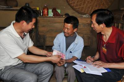 镜头十二:上午11:30分,杨文华和队员赵凤舟来到8组先天性发育不良,56岁仍孤身一人的周殿财家,在队长杨文华真情为民服务的精神感召下,队员赵风舟也掏出100元交给周殿财,并乐于结对帮扶。