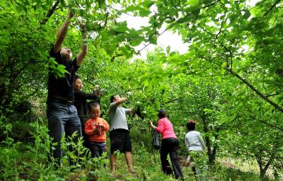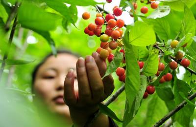 5月1日,在来凤县漫水乡乡油房坳村的林果基地里,游客正在采摘成熟的樱桃。 近年来,油房坳村充分做好“山的文章”、“念好致富经”,大力发展林果种植,全村几百亩荒山,种植了柚子、梨、李、桃等水果。时至5.1假期,樱桃成熟,殷红映枝头,吸引了不少城里的游客携带妻儿前来采摘、体会农家生活、感受劳动的喜悦、过一个有意义的节日。