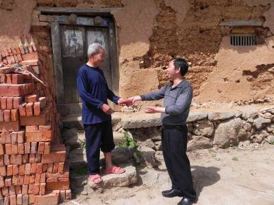 “三万”活动紧锣密鼓,郧县安监局工作组深入农户访民情,解民忧。图为工作人员为贫困农户送去卖化肥的资金。韩堂友/摄