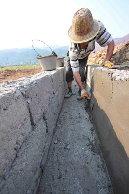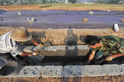 5月3日,保康县马桥镇中坪村村民对该村农田水渠进行硬化改造。春灌在即,保康县加大资金投入,加快渠系配套工程建设,确保春灌用水,为当前抗旱促春耕生产打下坚实基础。(本报视界网 杨韬 摄)