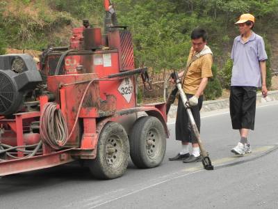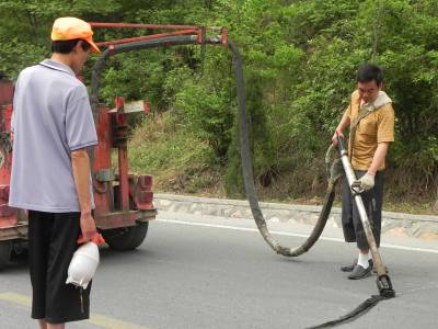 近日,十堰市公路局职工在301省道郧县路段处理道路裂缝。据介绍,该局使用专业的开槽机对裂缝进行开槽、清缝,用热喷枪和灌缝机将密封胶热处理后灌入道路裂缝,此密封胶能在地面温度零下22摄氏度至零上64摄氏度之间保持较好的伸缩性能,可有效防止道路反复开裂。(荆楚网通讯员 张传郧 湖北郧县青曲中学 13635714262 442531)