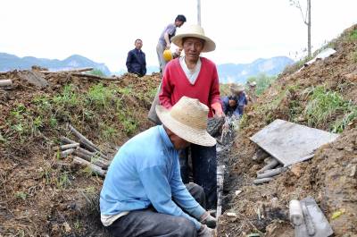 企业“反哺”农业 5月3日,恩施市红土乡稻池村几名村民正在忙碌着用水泥砂浆整修水渠。 据悉,4月份以来,恩施州长槽湾煤矿有限公司老板吴清华,致富不忘乡邻,投资近4万元,整修农田灌溉水渠1500多米,将水引到黄堰塘蓄积,可解决400多亩水田旱涝保收,受到了社会好评。(本报视界网彭绍峰摄)