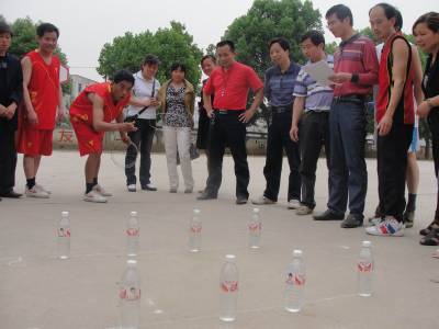 “加油!加油……”昨天下午,2011年郧县青山镇教职工趣味运动会在一贯制学校举行,参加选手和观众都乐翻了天,比赛现场成了一片欢乐的海洋。本次运动会集竞技、趣味、锻炼为一体,共设毽子投篮、套圈、袋鼠跳等十六个单项和篮球、拔河两个集体项目,近百名教职工共聚运动场,经过一天半的角逐,各项目冠军名花有主,不仅使教职工们的工作压力得到了舒缓,而且有利于广大教职工精神饱满地投入到紧张的教育教学工作中去,构建和谐、文明校园。(视界网 黄循发摄影)