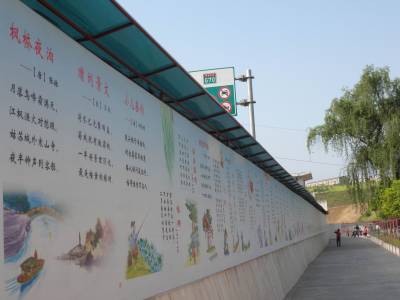 郧县倾力打造书香校园,青曲镇中心小学围墙的内壁是小学生必背的70首古诗的文图喷绘,教学楼走廊的外壁上是几十个寓言故事巨幅彩绘。校长徐光远说,孩子们毕业走出校园能熟记这些古诗和寓言,我相信他们不仅有了深厚的传统文化修养,而且有了中华美德和智慧深深熏染,这对他们做人做事能产生长远的影响。 董甲伟 摄