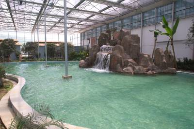叠水湾温泉度假区隶属于咸宁市温泉区,地处武汉、长沙、九江黄金旅游三角之中心,交通大动脉107国道,京广铁路、京珠高速纵穿南北,106国道横贯东西,到省城武汉只80公里,距长江深水码头30公里,具有得天独厚的区位优势。度假区占地140多亩,拥有能同时容纳1000人就餐的生态餐厅,1500人洗浴的温泉和200人住宿的四星级酒店。由于背靠森林公园,年均气温16℃,冬无严寒夏无酷暑,山清水秀,景色怡人。