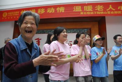 “哈哈哈”笑声和掌声从下陆区老年福利中心不断传出。来自黄石移动下陆铁山营业部的13名青年团员志愿者,与这里的53名老人一起开展互动游戏,帮老人打扫卫生,陪他们聊天,以这种特殊的方式度过“五四”青年节。 通讯员:蔡翔 摄