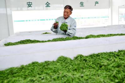 5月春光明媚,在享有“中国名茶之乡”美誉的宜昌市夷陵区邓村乡,翠绿的茶园郁郁葱葱,忙碌的车间机声隆隆,从生态有机茶园到洁净自动化制茶车间,茶农、茶企正抓住晴好天气时机,在5月6日立夏之前抢采、赶制春茶,绘制出一幅幅采茶、制茶“春景图”,把地处高山的邓村茶乡装扮的美丽如画。据悉,邓村乡目前已发展茶叶65000亩、年产量4500吨、年产值1.5亿元,茶叶成为该乡8000多农户的第一大支柱产业。本报视界网 张国荣 摄