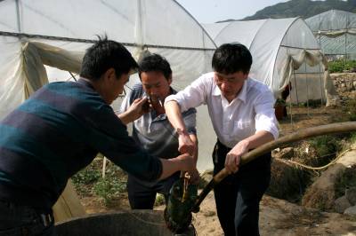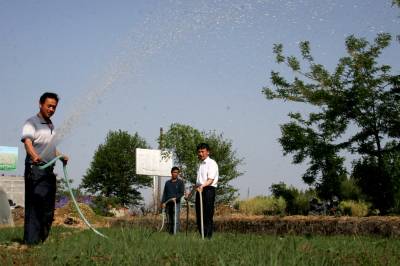 5月4日,竹溪县城关镇“三万”工作队员与群众一道抗旱。今春的连续干旱,给竹溪县农业生产造成严重损失,全县100余万亩农作物饱受干旱和高温“折磨”。其中80多万亩农作物减产,10多万亩绝收,直接造成经济损失1000余万元。面对严重旱灾,该县迅速把千名县乡干部组成的百支“三万”工作组的工作重点转移到抗旱上。现已筹集500万元资金、200多台套抗旱设备、集中原有抗旱设备、启动所有抗旱设施,全力以赴战旱魔,力保“菜篮子”和“粮袋子”安全。目前,全县10万干群奋战在抗旱救灾一线。