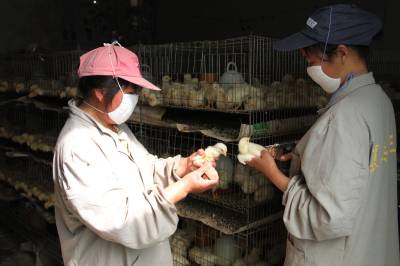 培育幼雏富乡邻 5月4日,汪洲村农民在给幼鸡注射疫苗。谷城县庙滩镇育雏大户汪天芒,每年将刚孵化出来的20万只雏鸡培育到750克时,再卖给乡邻们。解决了当地农民养鸡中培育雏鸡场地不足、缺少防疫知识、成活率低等难题。她自己也因育雏年收入20万左右。 本报视界网马明刚摄