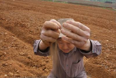 抗旱保春播 5月4日,广水市骆店镇天堡村村民刘友富在农田地手捧土壤失墒耕地忧心如焚。据悉,随州市自去年11月以来,降水量与历史同期相比骤减六成,全市共有81.44万亩农作物受旱,全市2.65万口塘堰干枯。目前,参加“三万”活动的驻村干部,把抗旱保春耕作为当前的中心任务。本报视界网杨文明摄