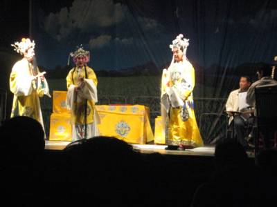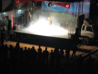 5月4日晚,襄阳市豫剧团来到宜城市刘猴镇刘猴小学,为刘猴人民奉献了一台精彩的文艺晚会,晚会以宣扬爱老、敬老为主题,倡导人们要孝顺父母,尊重长辈,节目包括国家一级演员刘莉莉表演的豫剧选段《打金枝》,批判近亲结婚的小品《保镖》、弘扬爱国主义情感舞蹈《精忠报国》、中华传统绝技《变脸》等,演员们扎实的表演功底和字正腔圆的演唱,受到大家热烈欢迎。 (本报视界网 周卫华 摄)