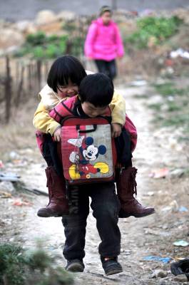 放学的时候,其他孩子都兴高采烈地冲出校门,因为校门口有等待他们下课的父母,家中有丰盛的晚餐。而李韶杰则要背着姐姐,穿过街道,一步步登上漫长的台阶。姐弟俩来到母亲卖菜的地方,在旁边的台阶上一边做家庭作业,一边等母亲做完生意后一起回家做晚饭。
