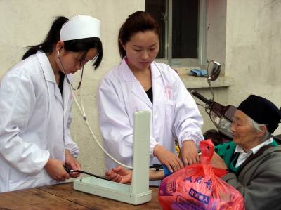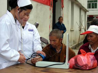 5月4日,黄梅县妇幼保健院青年志愿者在为柳林乡福利院孤寡老人量血压。为纪念五四青年节,迎接5月8日国际红十字会日的到来,当日,黄梅县卫生局、红十字会组织红十字青年志愿者深入到偏远山区的柳林乡福利院为30余名孤寡老人进行义诊,并为老人们送去米、油等生活用品,用自己的行动诠释了博爱、奉献的精神,让老人们感受到了社会大家庭的温暖。(本报视界网吴志雄 摄)
