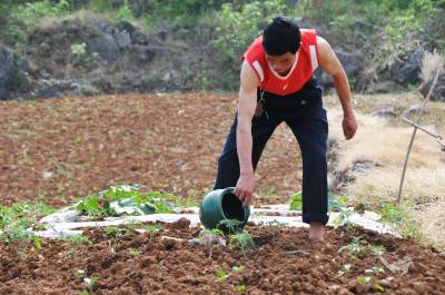 5月5日,郧县谭山镇徐家村五组村民李承军正在挑水浇菜苗,去冬至今的持续干旱己使谭山镇村民庄稼严重减产,蔬菜靠每天浇水保苗,许多村民早己在购买从河南进货的高价菜. 图为村民李承军正在挑水浇菜苗时的情景. 周家山摄 郧县城管大队 电话13872840078 邮编442500