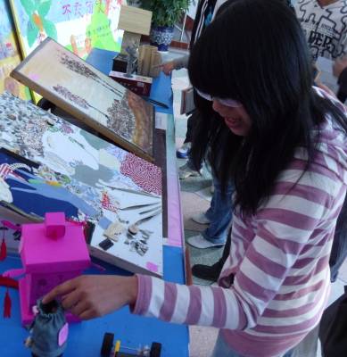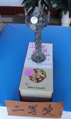 本网讯 (通讯员 向亚琼 杨洋 李曼)培养创新能力,树立创新意识。5月5日中午,湖北民族学院理学院第三届职业技能强化大赛之小制作、小发明大赛获奖作品展在该院一楼大厅举行,展出26件精美学生小制作、小发明。作品紧紧围绕“环保低碳”的理念,大胆设想,利用塑料袋、筷子、废旧光碟、毛线、碎玻璃、硬币等日常生活用品,制作成模拟太阳房、八卦笔筒、宫灯、茶座、太阳能赛车等,极富意趣,吸引了不少师生前来观看。
