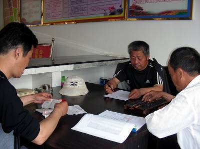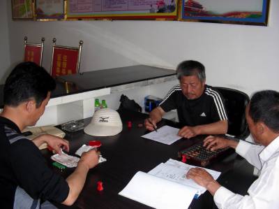 5月6日,在黄梅县黄梅镇竹林咀社区,社区民主理财小组成员在一起核算上月村财务收支(如图)。