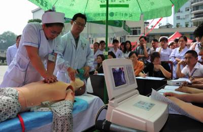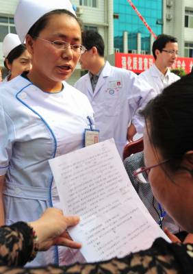 5月7日,在建始县人民医院举行的第五届技能大赛上,该院身着洁白衣裙的护士选手分15个代表队与所在科室医生一道角逐医院举行的心肺复苏技能操作(图一)和理论检验大赛(图二)。在6日举行的知识抢答赛上,该院护士组成12支代表队与12支医生代表共同抢答1800道赛题(图三),角逐异常激烈(图四),在最灿烂的“5.12”国际护士节到来之际,白衣天使正以这种特殊方式展示着的风采(图五)。