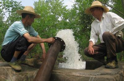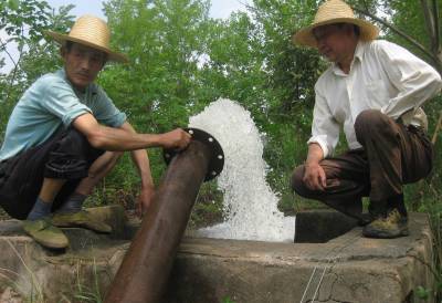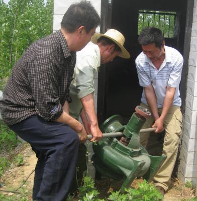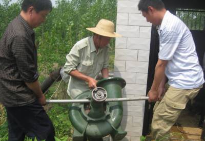 持续的春旱并没有吓倒勤劳的安陆市王义贞镇山乡百姓。看,5月8日,王义贞镇石塘村农民正在抬机子,架管子,最终把郑家河干渠的水提升20余米送到最需要的秧田和塘堰。 图一:村民抬水泵的情景;图二:终于出水了。