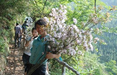 我与山花合个影 5月8日,即将开业的建始县业州镇代陈沟景区已是游人如织,游步道两旁山花烂漫,揽一把在身旁,与山花合个影,“人面桃花相映红”实在是很惬意的事。如今,城郊的自然风光吸引了众多居民走向户外,周末、假日与亲朋好友到城郊休闲、游玩已成为城镇居民的健康时尚生活方式。