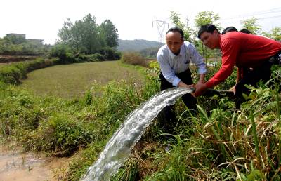 抗旱保苗 6日,咸安区商务部门调动灌溉机械在汀泗桥镇程益桥村进行抗旱保苗。近期以来,持续晴旱少雨,该区部分地区旱情严重。灾情面前,咸安区各级部门纷纷行动起来,积极发动干部群众,采取疏通排灌渠道、抽水灌溉等措施进行抗旱,减少农业损失。 袁灿 摄