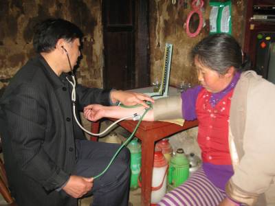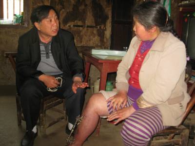 图为:五峰县人民医院专家给谢厚珍诊断病情。5月6日,五峰县委宣传部部长王云洋带队来到傅家堰乡左泉洞村三组李广权家,就如何帮扶李广权,召开支部扩大会。会上确定了在大病救助、产业发展、子女教育方面给予照顾。2010年11月1日,李广权的妻子谢厚珍在田里做农活时,右腿不幸骨折。李广权的女儿在傅家堰中学读书,生活费困难。同时,该家生产资料少,只有4亩田。五峰县委宣传部了解后,结合“万名干部进万村入万户”活动,开展“志能激发”,期望李广权能走出困境。