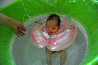 新生儿“游泳”受追捧