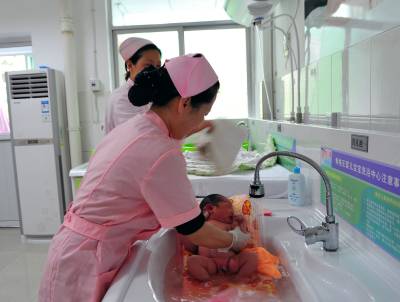 5月9日,刚刚出生才一周的新生儿宝宝在爸爸、奶奶、姑姑的陪伴下开始了人生的第一次健身运动—游泳。小家伙在护士阿姨的呵护下,在“泳池”里大展拳脚,伸伸胳膊蹬蹬腿,那样子美极了。湖北省秭归县人民医院妇产科开展的洗婴、抚触按摩、游泳服务刚一推出,就受到年轻妈妈、爸爸的追捧。该院妇产科护士长韩兰珍介绍说,新生儿“游泳”对身心发育好处多多,能有效促进婴儿的消化吸收功能及胎便的早排出,增加肺活量,还能刺激新生儿脑神经发育,促进全身各系统的发育和成熟,提高抗病能力,建立睡眠习惯。新生儿情商、智商更高、更聪明。(视界网:王家满摄)