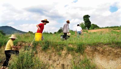 > 河口村民抗旱忙