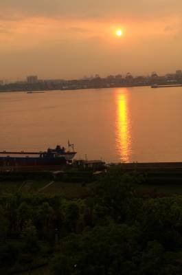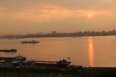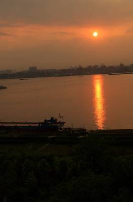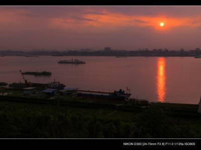 2001年5月9日,夕阳西下,武汉白沙洲江面被染得彤红,波光粼粼,尤为壮观!