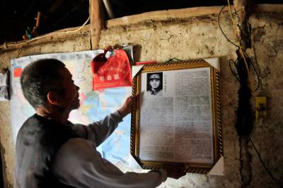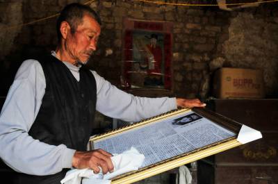5月5日,天气有些燥热,76岁的薛光平坐在堂屋里一遍又一遍地擦着一张玻璃相框,直至擦到一尘不染他才把相框挂在土墙上,然后他又左右看了看,调了调,直到相框的位置摆正得让自己满意。