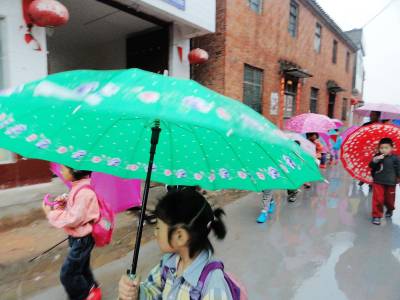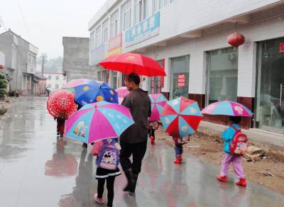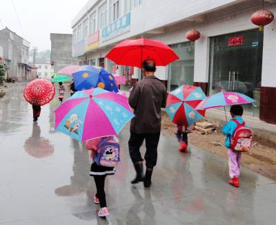 5月9日晚,郧县普降大雨,据有经验的老农称至少有“三指”(50毫米)墒情。10日晨郧县刘洞镇街道上一串串美丽的伞花让久违的降雨充满了喜庆。(高超 摄)