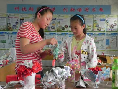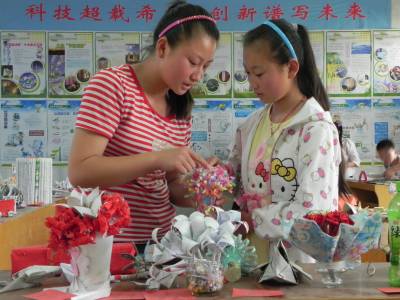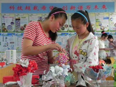 日前,湖北省十堰市郧县青曲中学举行了“放飞梦想 我要制作”主题教育活动,该校把科技小发明、小制作纳入校本课程,倡导学生开展小制作、小发明、小创作活动。图为学生在校科技博览室参观自己作品时的情景。(本报视界网通讯员 张传郧 郧县青曲中学 13635714262 442531)