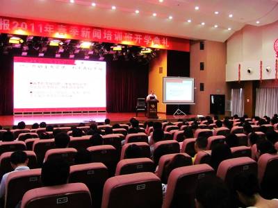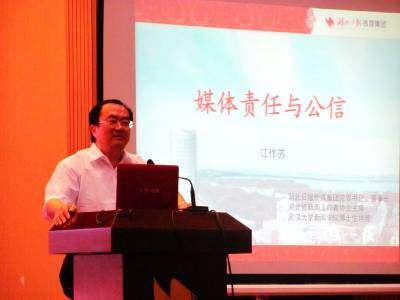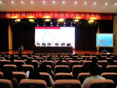 5月10日上午,湖北日报2011年春季新闻培训班开学典礼在楚天传媒大厦举行。集团副总编辑张勤耘致欢迎词,集团党委书记、董事长、社长江作苏为学员作了以“媒体责任与公信”为主题的讲座。来自全省40多个县市区的近400名学员参加了培训,继去年298人的培训规模再创新高。