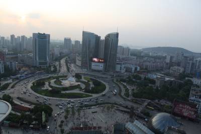 在光谷高楼拍摄光谷广场全景