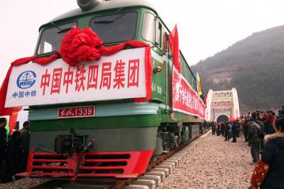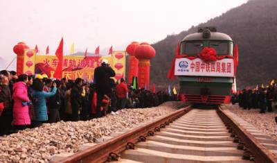 十二月二十八日上午十一时,随着一声长长的汽笛声,宜万铁路铺轨列车缓缓确保宜为铁路2010年全线貫通打下了坚实基础。使过建始县高坪镇野三河大桥。截止目前为止宜万铁路东线铺轨已达256公里,为