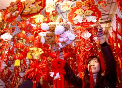 中国结”染”红江城昨日,一些市民在武汉市汉正街挑选”红色饰品”。随着新年元旦的临近,汉正街早已感受到年了味道。瞧,红红的吊钱、各式各样的剪纸、五彩缤纷的灯笼、年味十足的鞭炮和象征吉祥如意的”中国结”卖得红红火火,早已把我们带入到了欢乐祥和的节日气氛中。记者张鸿摄