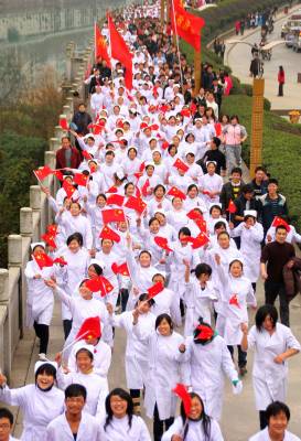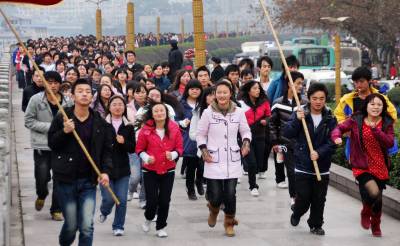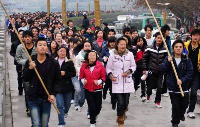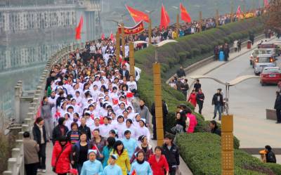 2009年12月30日,湖北恩施州市民在”万人长跑迎新年”活动中。当日,湖北恩施州土家族苗族自治州举行了”迎新年”万人长跑暨”2010年全民健身活动”启动仪式,来自恩施州1.5万余名学生、警察、企事业单位工作人员等参加了长跑,以此迎接2010年的到来。