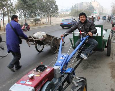 1月12日,湖北省丹江口市三官殿办事处三官殿村一组村民小申花5500元,在市区农机商场高高兴兴买回一台农用手扶拖拉机,他告诉笔者,这是补贴1300元之后的价格。据农机商场任老板介绍,农民只需交几百元押金,由商家按照政策补贴标准,暂时垫付购买者农机补贴金。这种“一站式”惠民办法,很受农民朋友的欢迎,对进一步改善农业装备结构和新机具推广应用起到了积极促进作用。(本报视界网 钱芹 摄)