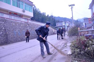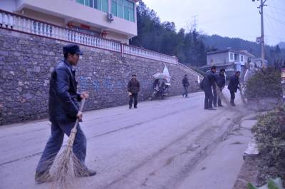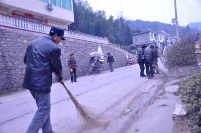 2013年1月15日,恩施州宣恩县万寨乡罗针田村村民代表、党员干部与宣恩县民政局“三万”工作组成员一道开展村庄环境卫生整治。