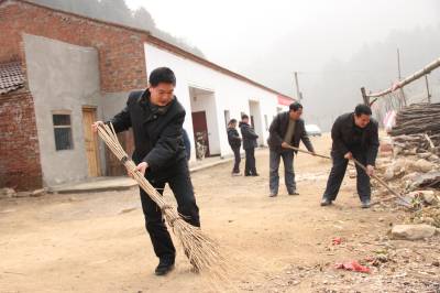 1月16日,丹江口市民政局“三万”工作队员们冒着严寒深入七星河村,入村后工作队员立即挽起袖子挨家挨户清理路边的杂草、清除水沟里的淤泥和庭院里的垃圾等。在他们的带动下,村里干部群众帮忙推的推、拉的拉、铲的铲、扫的扫……现场热火朝天,一片繁忙。清理之后,队员们深入农户家围绕落实党的十八大精神、村组卫生基础设施建设维护、村庄环境整治长效机制建立等方面向村民们作了深入宣传。