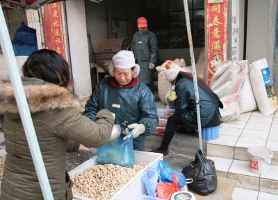 1月17日,竹溪县城关东门“炒货”店老板付从明一边忙着加工,妻子一边招揽顾客,请来的伙计现场挑选分级,现炒的“炒货”让顾客很放心,很满意,生意很火。据介绍,年关将近,该“炒货”店一天能出售200多公斤加工的花生、瓜子、核桃等“炒货,月净收入2万余元。