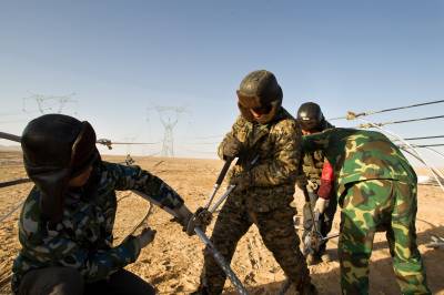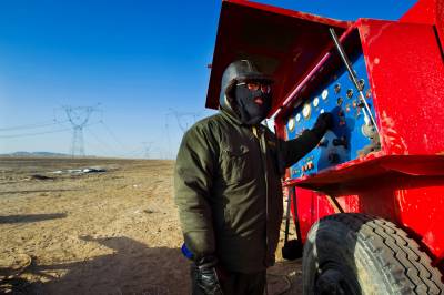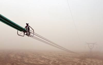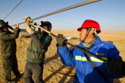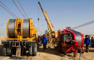省送变电工程公司全力打好戈壁架线施工攻坚战(李季 摄)
